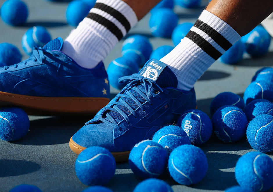The Bodega x Reebok NPC UK “Decade” will release on Saturday, August 20th exclusively at Bodega online at 10AM EST and in-store at 11AM. Retailing for $100, each pair will also come with one of the blue branded tennis balls seen here.