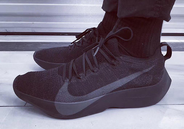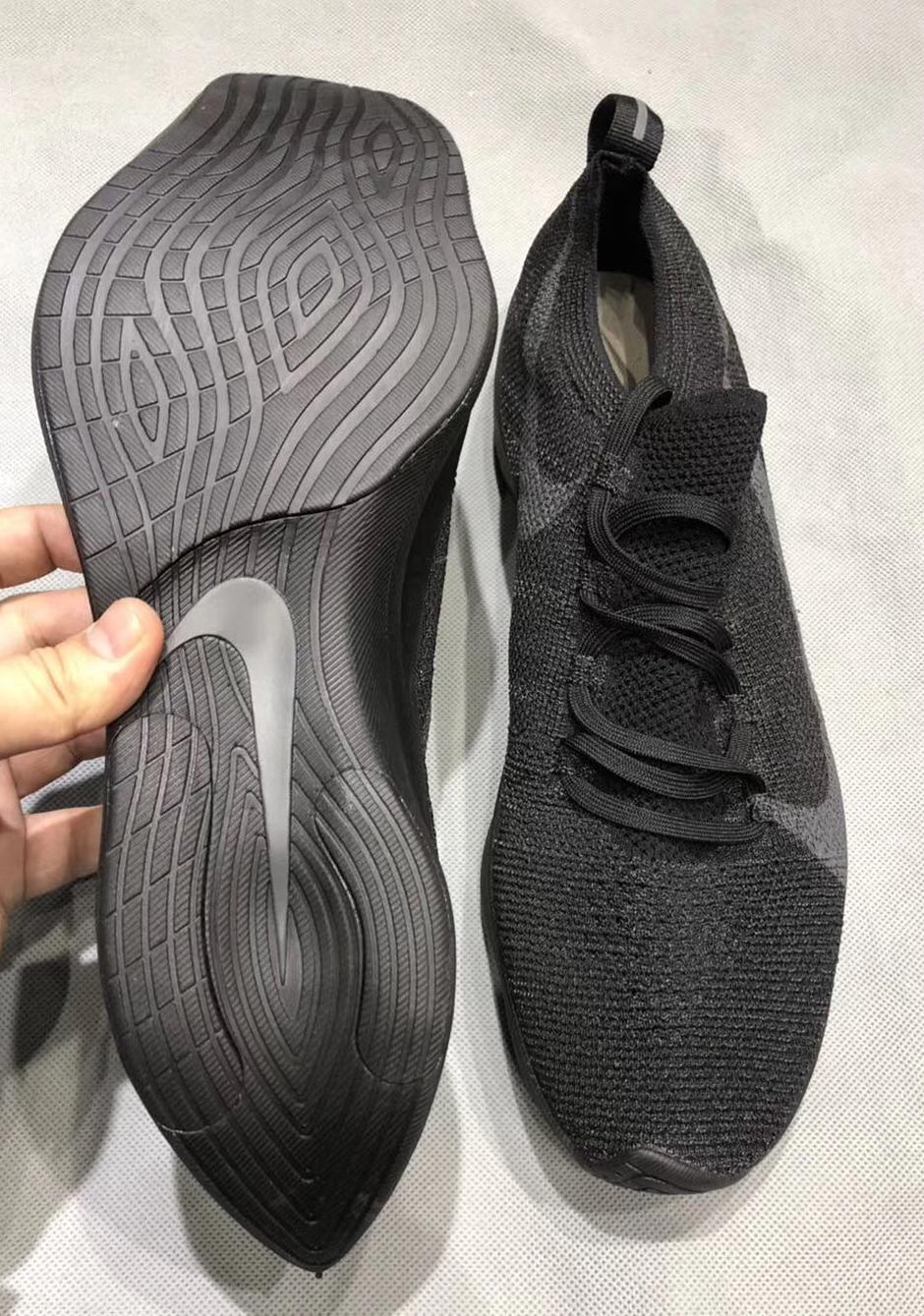 Nike is set to release a new silhouette that bears striking resemblance to a highly-exclusive performance model of the past. Images of the upcoming Nike Vapor Street Flyknit have surfaced, and upon inspection, seem to look a lot like the Nike VaporFly Elite that was worn by Eliud Kipchoge during the BREAKING2 event this year. There is no word yet whether the Vapor Street Flyknit will be as performance-geared or as exclusive as the VaporFly Elite, which had a $600 price tag and could only be had through a sweepstakes-style system. The colorway that has emerged features a tonal black upper, midsole and outsole with oversized dark grey Swooshes on both the lateral and medial sides of the shoe. While there is no official word on a release date for this or any other colorway, it is anticipated that they will hit the market in Spring of 2018. Stay tuned to Sneaker News for more release details as they become available.