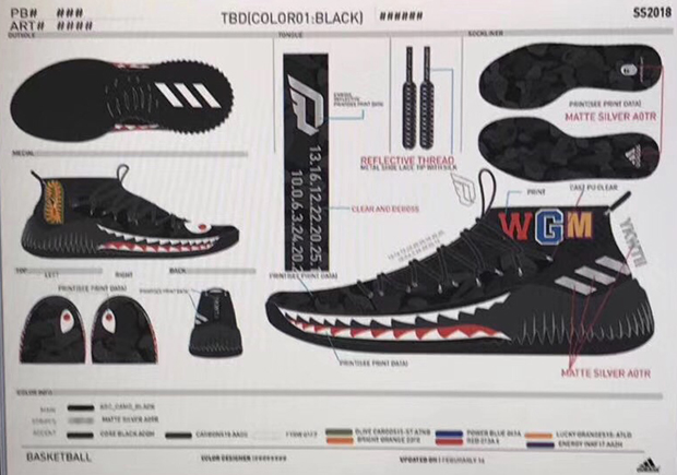 Update: The BAPE x adidas Dame 4 will release during NBA All-Star Weekend 2018.