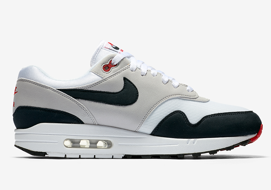 Nike will be continuing, and possibly closing, its celebration of the Nike Air Max 1 30th Anniversary with the release of yet another OG colorway – the Air Max 1 “Obsidian”. The classic original colorway will make its return with slight revisions to materials and construction, similar to the last few OG releases. The colorway features a white upper overlain with light grey accents and a obsidian mudguard-Swoosh combo. The shoe gets touch of flare from red accents and the “Nike Air” moniker on the heel. This classic colorway, last dropped in 2013, will roll out sometime in December 2017. Keep watch on Sneaker News for full release details and check out the detailed images below.
