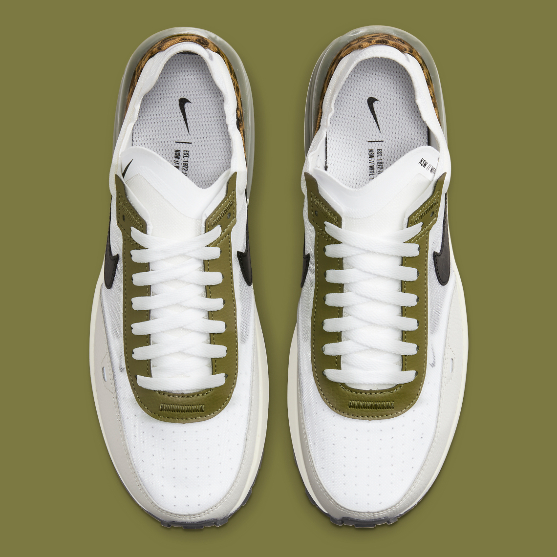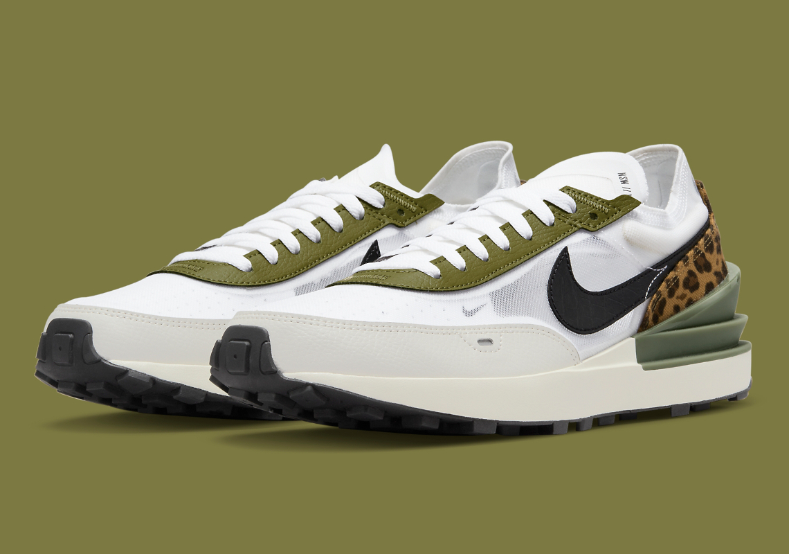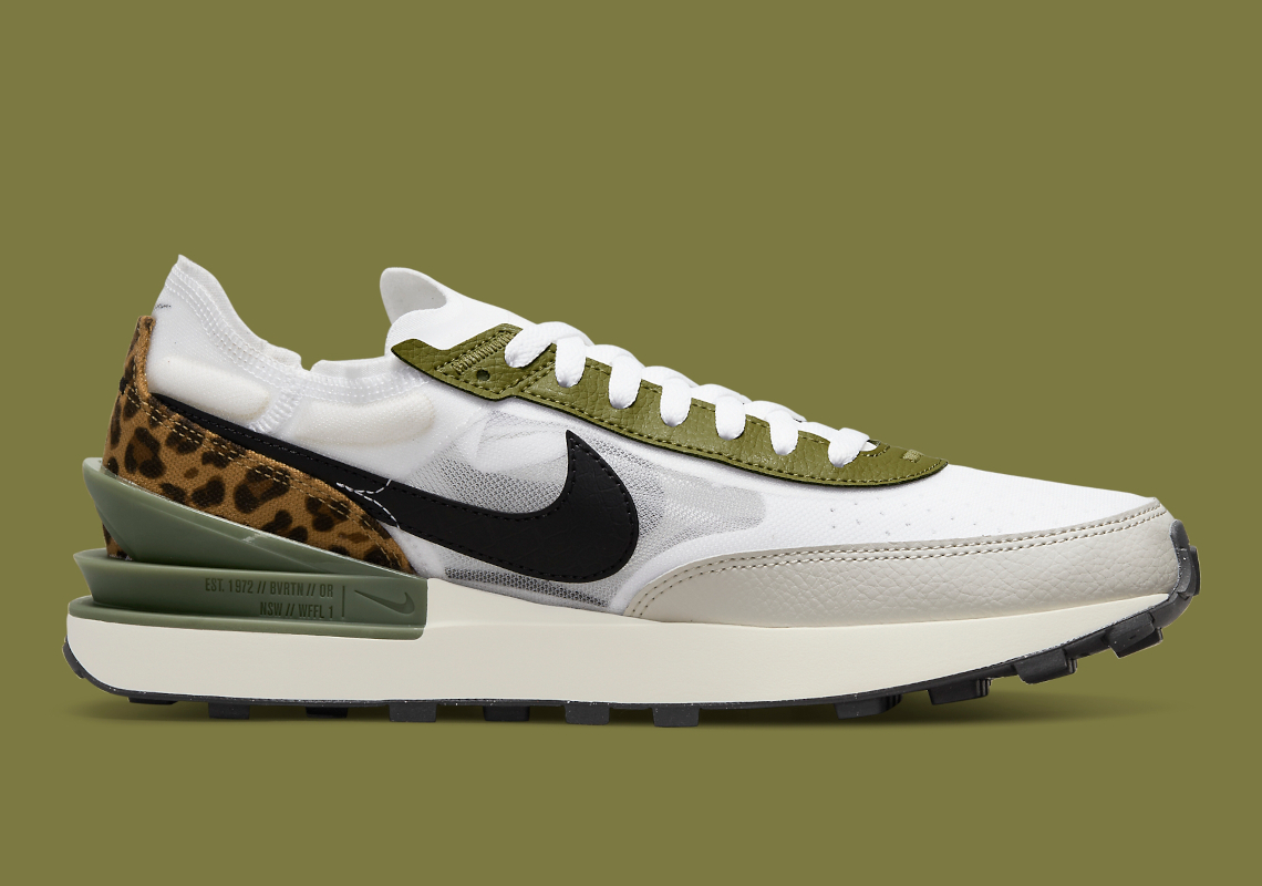 Recently, the vintage Nike Running-inspired silhouette appeared in a mix of wild details, including scale-like finishes and wild cat-resembling patterns. The Nike Sportswear proposition indulges in a predominantly “clean” color palette complimented by hits of muted green, black and brown, with the most former tone appearing along the tongue and at the plastic heel clip. Underfoot, the off-white midsole is accompanied by a pitch-dark, waffle-patterned tread solution that harkens back to the 1970s.