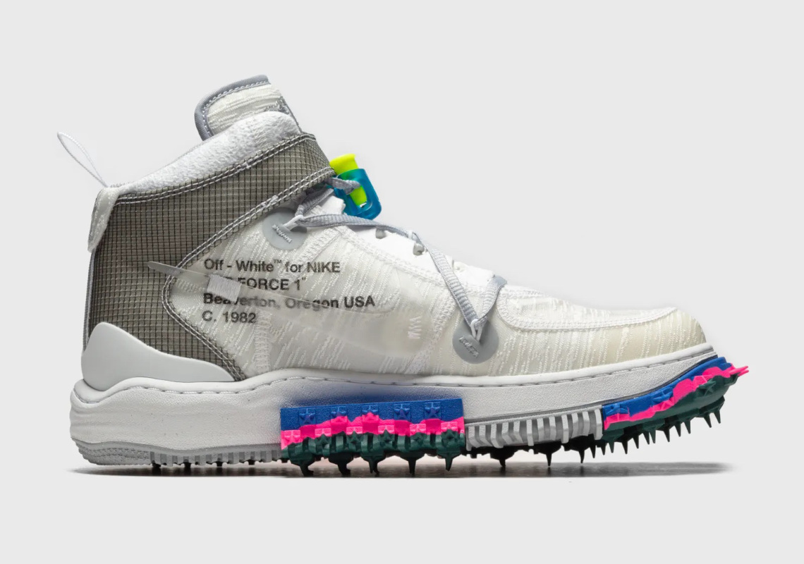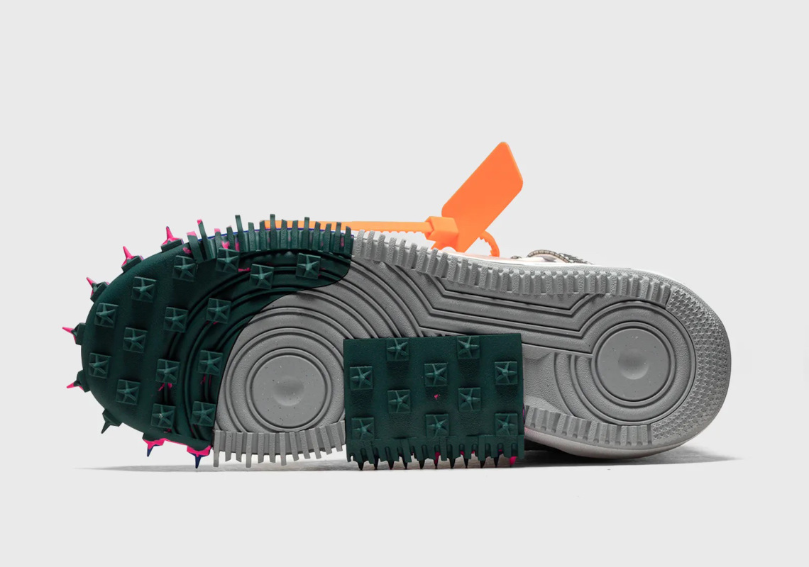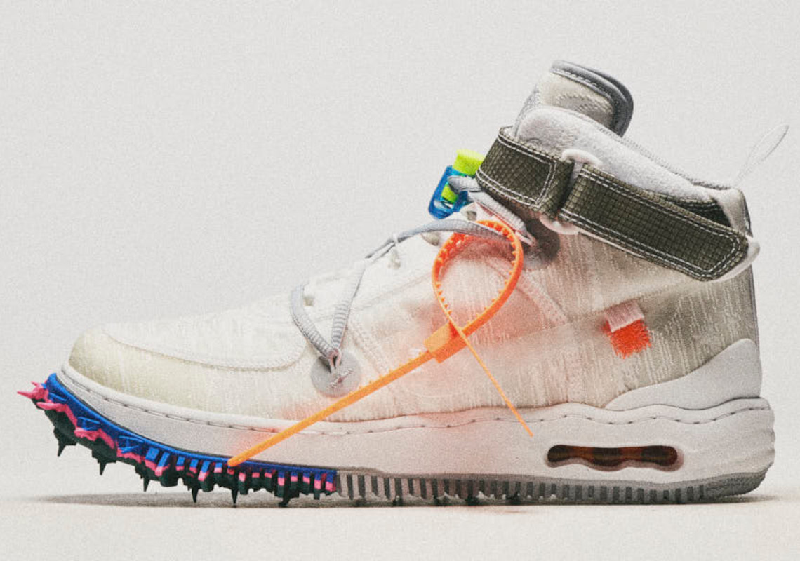 On June 23rd, Nike will unveil yet another posthumous release from Virgil Abloh, expanding the legacies of both Bruce Kilgore’s footwear design from 1982 and the Illinois-native. Akin to the accompanying “Black” pair, the upcoming drop delivers a notable overhaul of the Air Force 1 Mid, which debuted in 1994. Airy mesh replaces traditional leather across the upper, and dons a woodgrain pattern that further updates Kilgore’s creation. Non-traditional lacing systems and layouts fall in line with other offerings from the Off-White camp, working in-tandem with the orange zip-tie on the lateral profile to catapult the sneaker into the fashion stratosphere. Transparent logos at the sides further allow the aforementioned mesh to pop that much more, though the grey nylon ankle strap and nearby heel panels battle for the spotlight. Sole units underfoot, however, propose the Air Force 1‘s arguably biggest update to the 40 years as midsoles are deformed, Air bubbles are exposed and oft-imitated traction is modified with protruding spikes borrowed from Nike’s performance running line.
