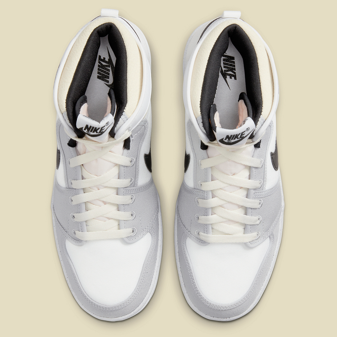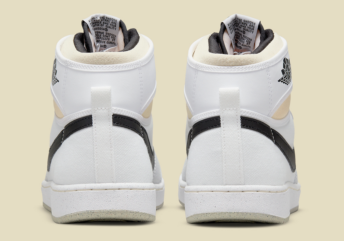 Recently, the canvas-covered proposition appeared in a non-original, grey, white, black and sail colorway. The bulk of the pair’s upper is clad in the two most former of the aforementioned tones, while profile swooshes, “AJKO” branding on the lateral ankle flap and detailing at and around the top of the tongue deviate in stark black contrast. Collar areas and Nike Dunk-reminiscent traction introduce an “aged” look into the mix, which has become popular among sneaker customizers over the last two years. Together, each component helps expand the already expansive design roster of the Air Jordan 1.