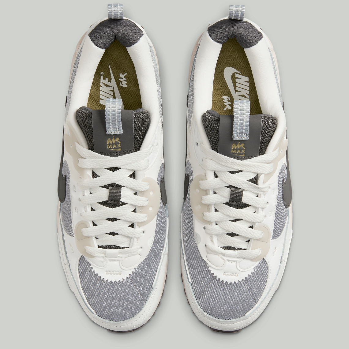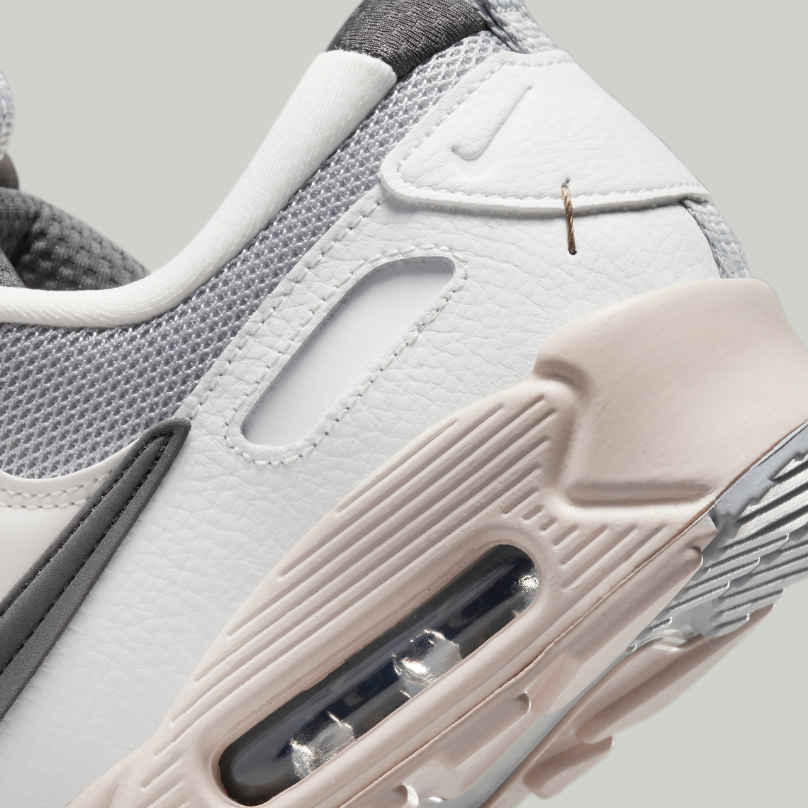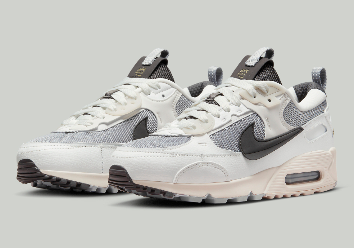 “Medium Ash” takes over the mesh base, which peeks out from underneath a series of non-standard, “Summit White”-colored tumbled leather panels. Semi-translucent TPU panels along the tongue follow suit, but the reshaped profile swooshes opt for a contrasting near-“Black” hue that also appears on the tongue, heel and Air Max unit underfoot. The remainder of the sole unit opts for an off-white hue that injects an “aged” aesthetic into Tinker Hatfield’s 32-year-old design.