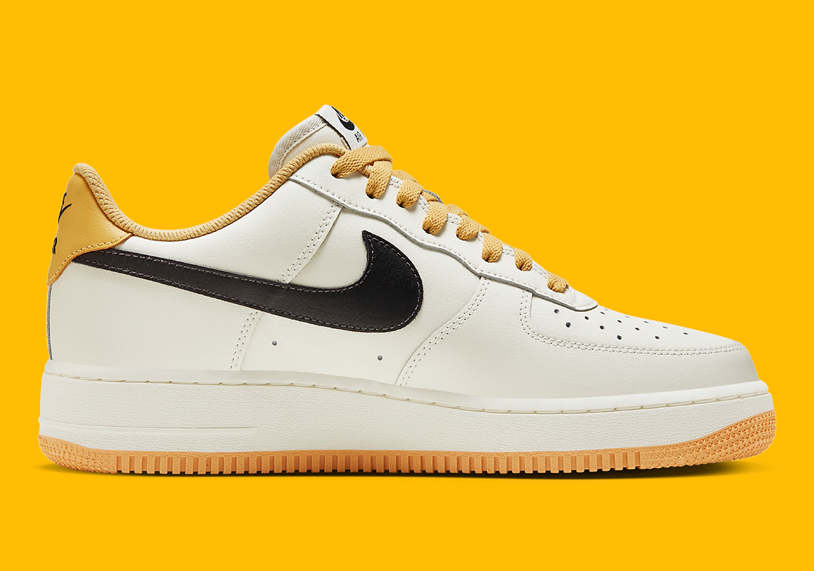 Recently, the Nike Sportswear staple emerged in a predominantly sail and black colorway, but faded gold hues enter the mix via laces, inner-lining, heel panels and traction underfoot. Lace dubraes forgo their traditional silver finish in favor of a honey-like hue that compliments the aforementioned faint yellow tones. Lastly, midsoles opt for an off-white look that allow for the bolder tones to revel in the spotlight.