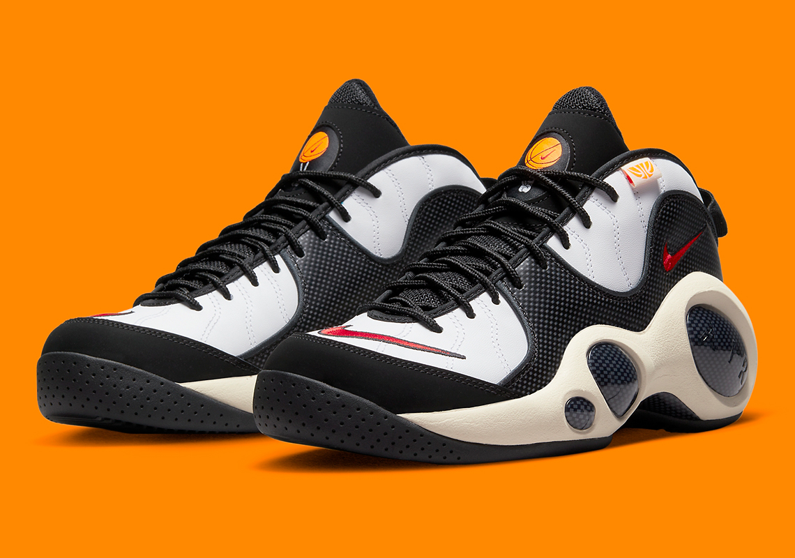 Minor (if any) modifications have been made to the model’s original design blueprint for its entry into the Nike Basketball collection, though some exist. The majority of the sneaker indulges in a straightforward “yin-and-yang”-friendly ensemble not too dissimilar from the pair Jason Kidd and other hoopers used to lace up on the NBA hardwood during the mid-1990s. Swoosh logos at the toe and lateral heel interrupt the monochromatic look with their “University Red” flair, as does the “Hoops Pack”-related branding at the tongue and mid-foot in their “Total Orange” makeup. Underfoot, midsoles opt for a slightly-yellowed finish that injects a touch of age to the Zoom Air-cushioned classic, harkening back to what is widely-considered the “golden age” of the NBA.