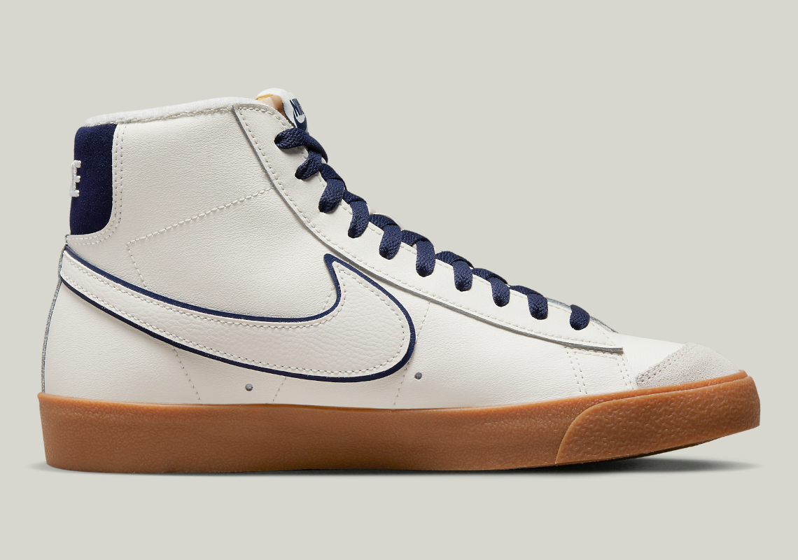 For its latest ensemble, the first Nike Basketball design has indulged in a clean off-white arrangement that’s complimented by dark navy details and a fan-favorite gum brown bottom. Laces, suede underlays at the upper spine and profile swoosh trims opt for a near-black look that pales in comparison to not only the bulk of the Nike Blazer, but also the herringbone-patterned sole unit underfoot.