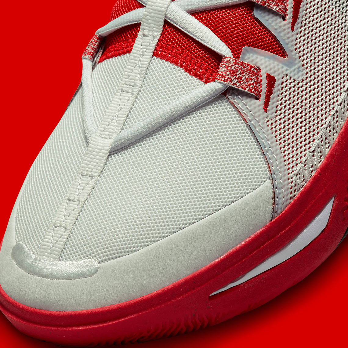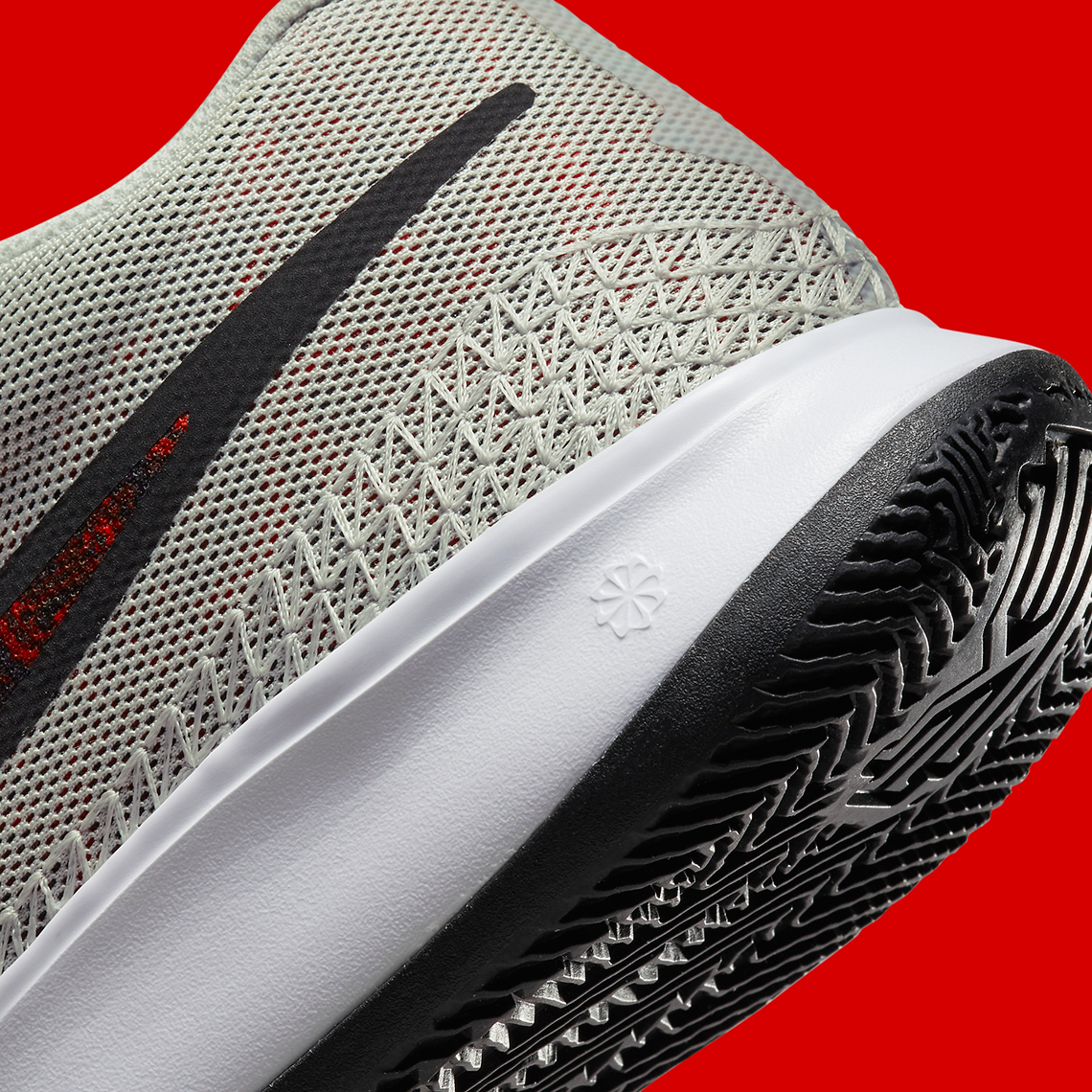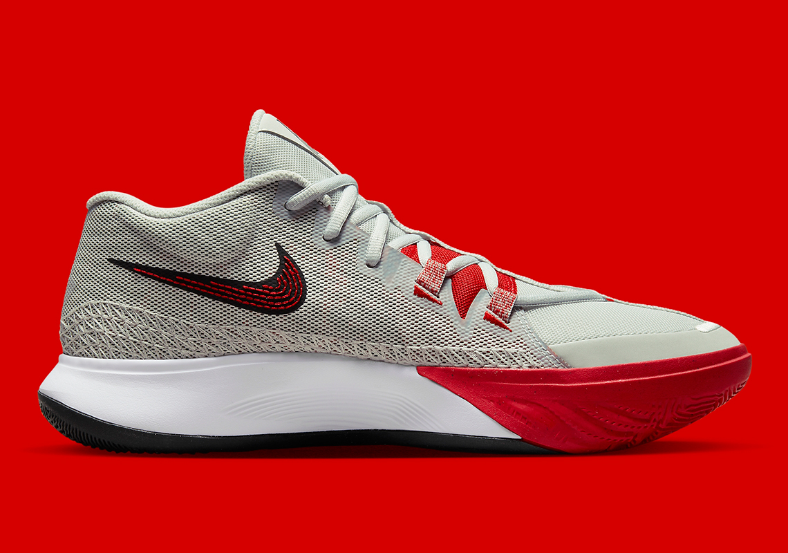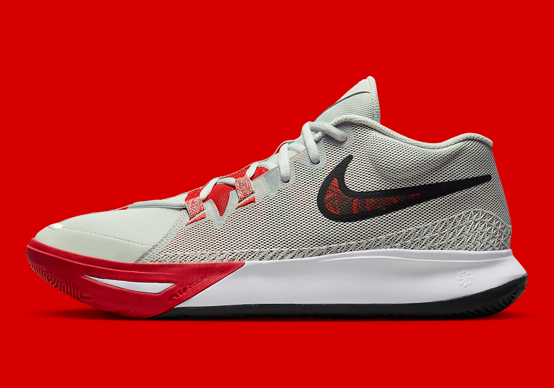 For its latest ensemble, the basketball sneaker has indulged in a grey, red and white mix perfect for any team on the amateur circuit. Mesh construction across the majority of the upper takes on a greyscale finish that allows for the slightest bit of ruby-colored flair to revel in the spotlight. Zoom Air-cushioning is enclosed within a multi-colored sole unit, with the tip of the forefoot donning the same contrasting red hue. The strapless Nike Kyrie sneaker keeps the general shape of some of the line’s most celebrated designs, while keeping things sleek for a streamlined look.