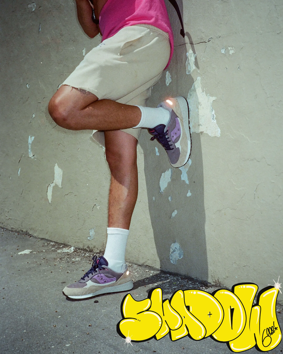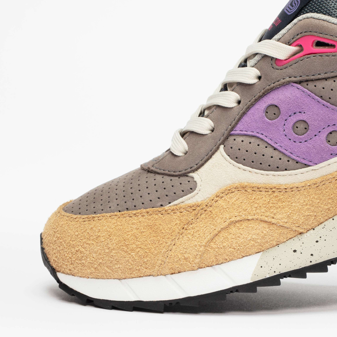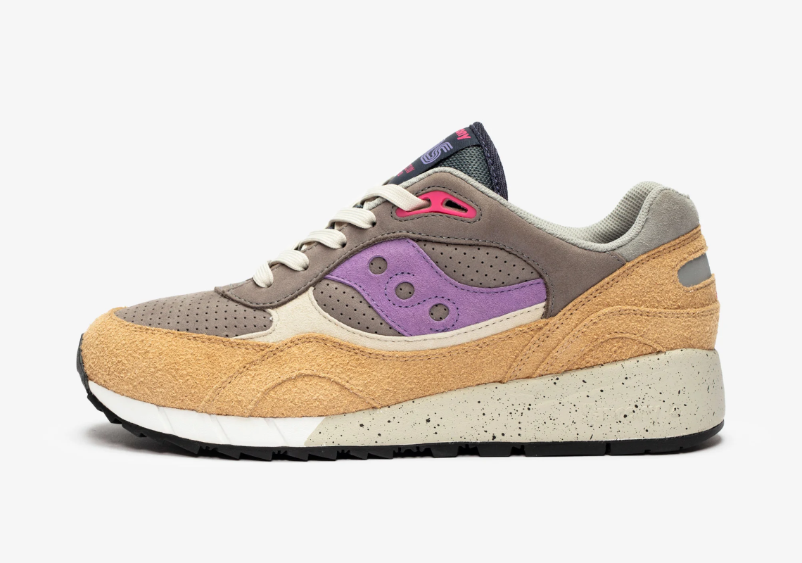 Inspired by the sneaker’s original color palette, as well as old catalogs from the brand’s outdoor segment, SNS’ next collaboration delivers a premium updated rooted in heritage. A two-tone hairy suede and perforated nubuck brings eye-catching tan with muted grey for a “nature versus city” arrangement that breathes new life into the 31-year-old model. A velvet-like material arrives via the profile “S” logo while the tongue takes on a nylon finish, material choices that further elevate the latest collaboration between both institutions. Lastly, hits of purple and pink work in-tandem with the speckled midsole to add some more personality to the Shadow 6000.