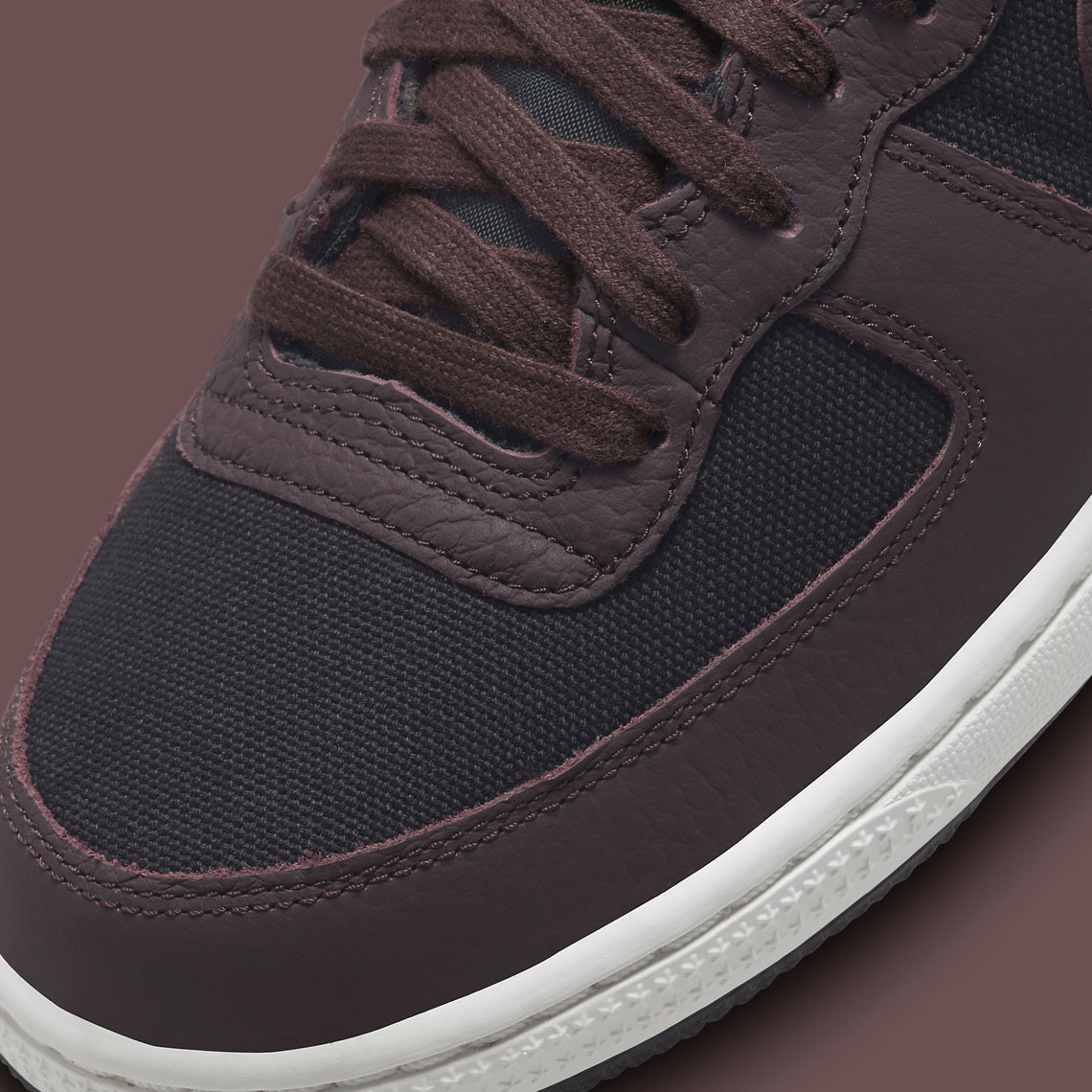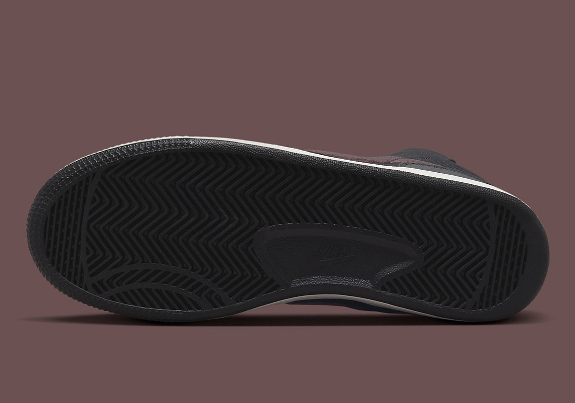Utilizing a canvas construction as its base layer, the latter comes treated in a dominant jet-black tone while establishing further darkened shades along its tongue which renders a mesh textile. Accented through smooth tumbled leathers, a strong sampling of “Velvet Brown” lays claim to the mudguard and quarter overlays in tandem with the midfoots Swooshes and adjacently placed heel tabs. Concluding the seldom sampling from the tonal spectrum, a brightened burgundy takes over the laces whereas elsewhere, black hues finish their inclusion along the embossed heel counter and tread before a clad “Sail” midsole completes the silhouette’s design elements.