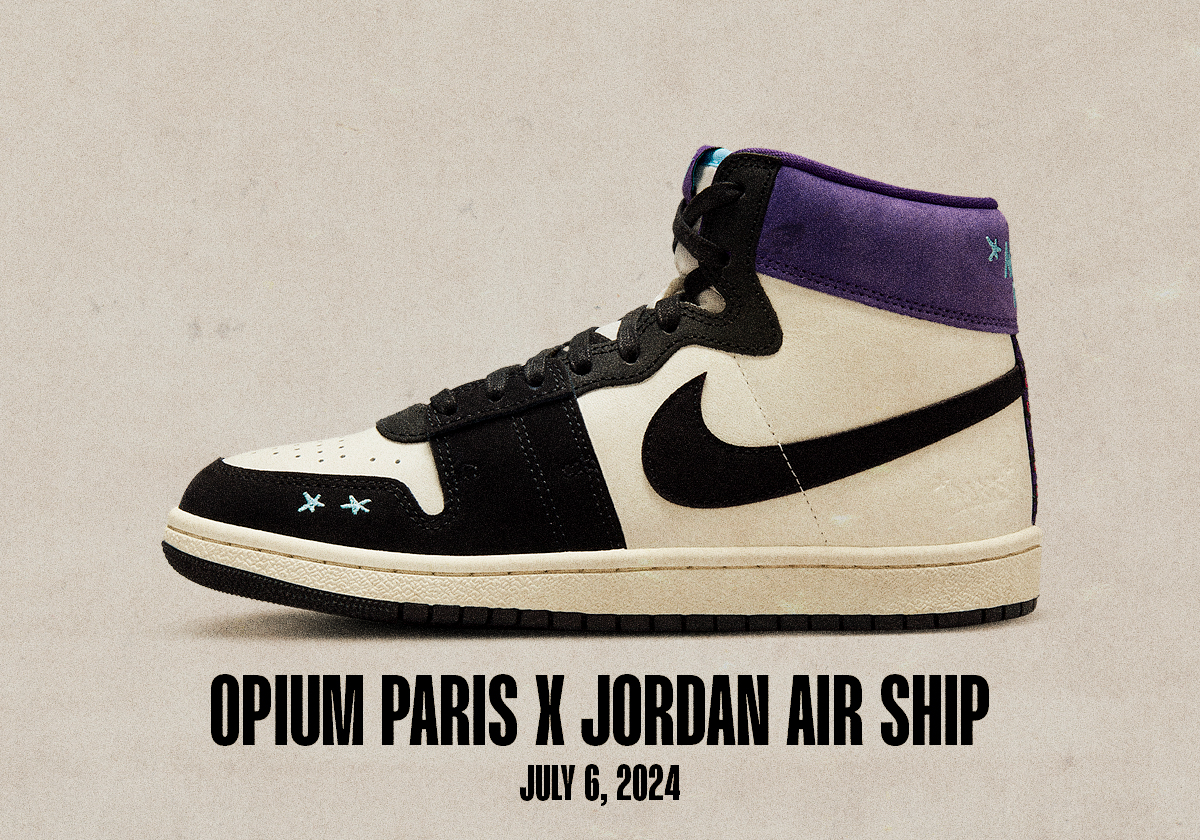 Paris’ Opium Air Ship slides in alongside its younger sibling model, the French imprint rolling out the throwback silhouette in Hornets colors on July 6th.