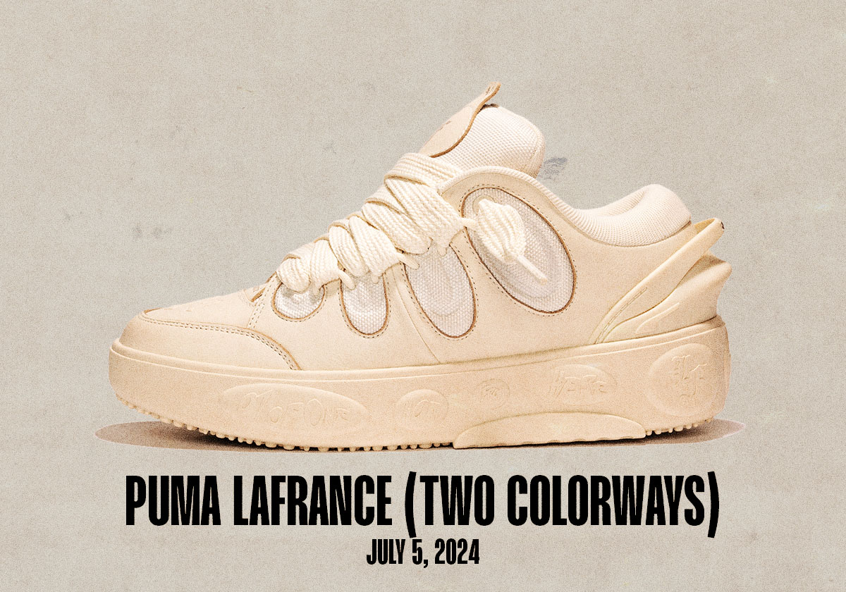 And Melo isn’t done, as on that same July 5th date, his lifestyle PUMA LaFrance shoe gets two additional colorways in cream & black/pink.