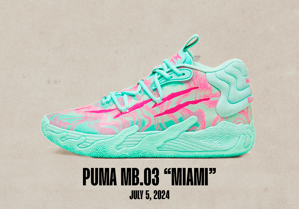 LaMelo Ball isn’t introducing a new shoe, but bringing an existing one to a new locale with the PUMA MB.03 “Miami” to close out the July 5th action.