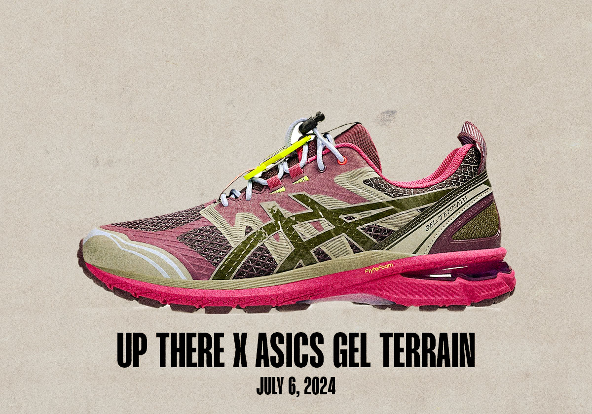 To close out the supersized week of drops, ASICS debuts the Up There GEL-Terrain, reconvening with the Australian outfit on July 6th.