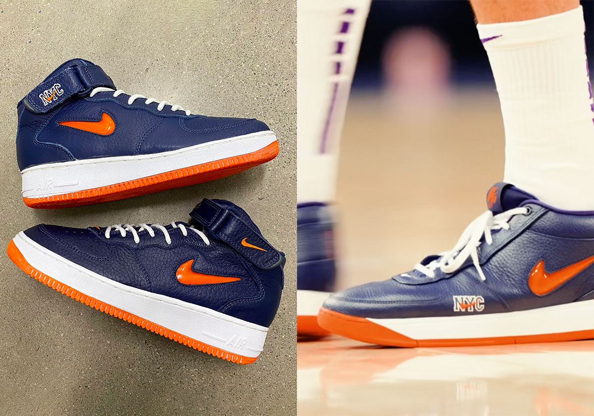 Given the Nike Book 1’s resemblance to the Air Force 1, translating the original 1997 Jewel Swoosh NYC appearance was a fluid transfer. Booker’s on-court shoes features the same dark navy blue upper with white laces/midsole and the translucent orange on the Swoosh logo. The iconic John Jay-designed Nike NYC logo appears on the fore-foot. Below is an image of the original ’97 pair that inspired this latest PE.